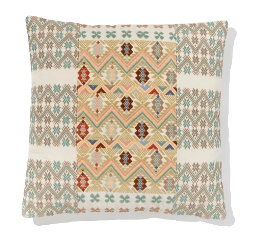 This pillow is thoughtfully constructed from three individually woven panels, joined together in the same tradition as the huipil—the handwoven blouse worn by Indigenous Maya women in Guatemala. Like the huipil, each panel is created on a backstrap loom, a technique deeply rooted in ancestral knowledge and cultural identity.